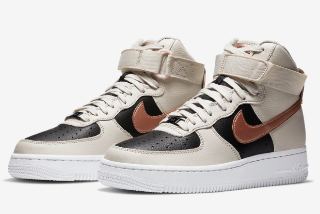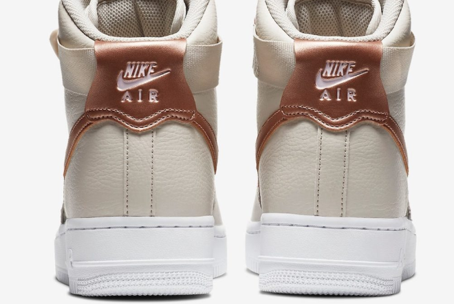 2. Classic Design: The Air Force 1 High Beige Black Copper maintains the classic design of the original Air Force 1, with a high-top silhouette and a padded collar for added ankle support. This iconic design is loved for its timeless appeal and versatility, making it suitable for various occasions.